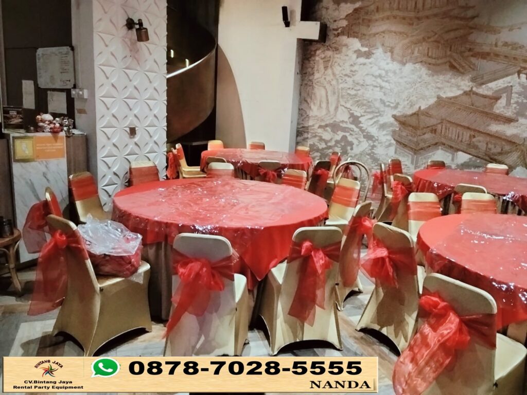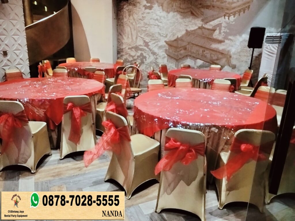 sewa kursi futura dan round table cover merah di Jakarta. Apakah anda sedang merencanakan acara penting di Jakarta? Baik itu pernikahan, seminar, atau pesta ulang tahun, penataan ruang yang tepat sangatlah penting untuk menciptakan suasana yang memukau.
