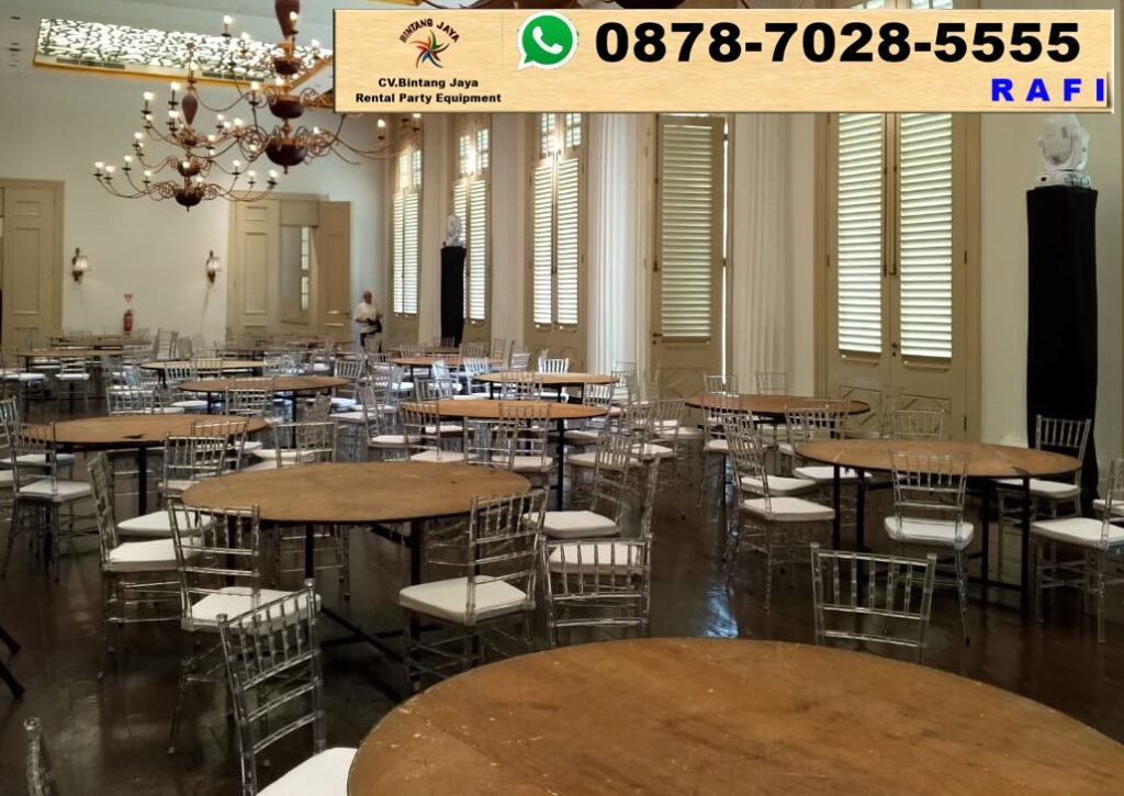 Paket sewa kursi acrylic tiffany plus meja bulat Tangerang. Kalau kamu lagi nyari perlengkapan untuk acara di Tangerang, Bintang Jaya punya paket sewa yang kece banget! Paket ini terdiri dari kursi acrylic Tiffany yang elegan dan meja bulat yang pas buat segala jenis event. Yuk, kita lihat lebih dekat!